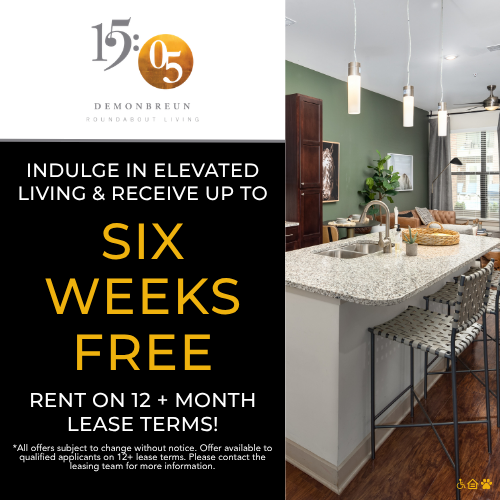 1505 Demonbreun is an upscale community offering a luxurious lifestyle, only minutes away from the thriving heart of Downtown Nashville. Our high-end studio, one, and two-bedroom apartments, are the epitome of trendy, city living with refreshingly modern finishes and unparalleled design. Residents have exclusive access to unwind at the resort-style pool, work out in our state-of-the-art fitness center, or take advantage of living in close proximity to a tremendous variety of entertainment, dining, and the bustling nightlife. Contact our Leasing Office to schedule your personal tour and learn about the 1505 Demonbreun lifestyle.